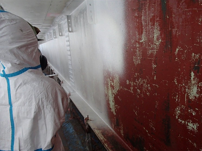 古い塗膜中に、基準値を超える高い濃度の有害な重金属類等(鉛・PCBなど)を含んでいる場合、ブラスト等の素地調整に先立ち、有害重金属類を含んだ塗膜のみを剥離工法にて除去します。これにより、塗り替え塗装工事全体で発生する産業廃棄物のうち、特別管理型となる産業廃棄物の数量を抑えて処理費用の低減が見込めます。